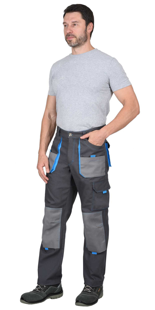 Брюки "Двин" т.серые со средне серым и голубой отделкой (ЧЗ) ( 88-92/182-188)