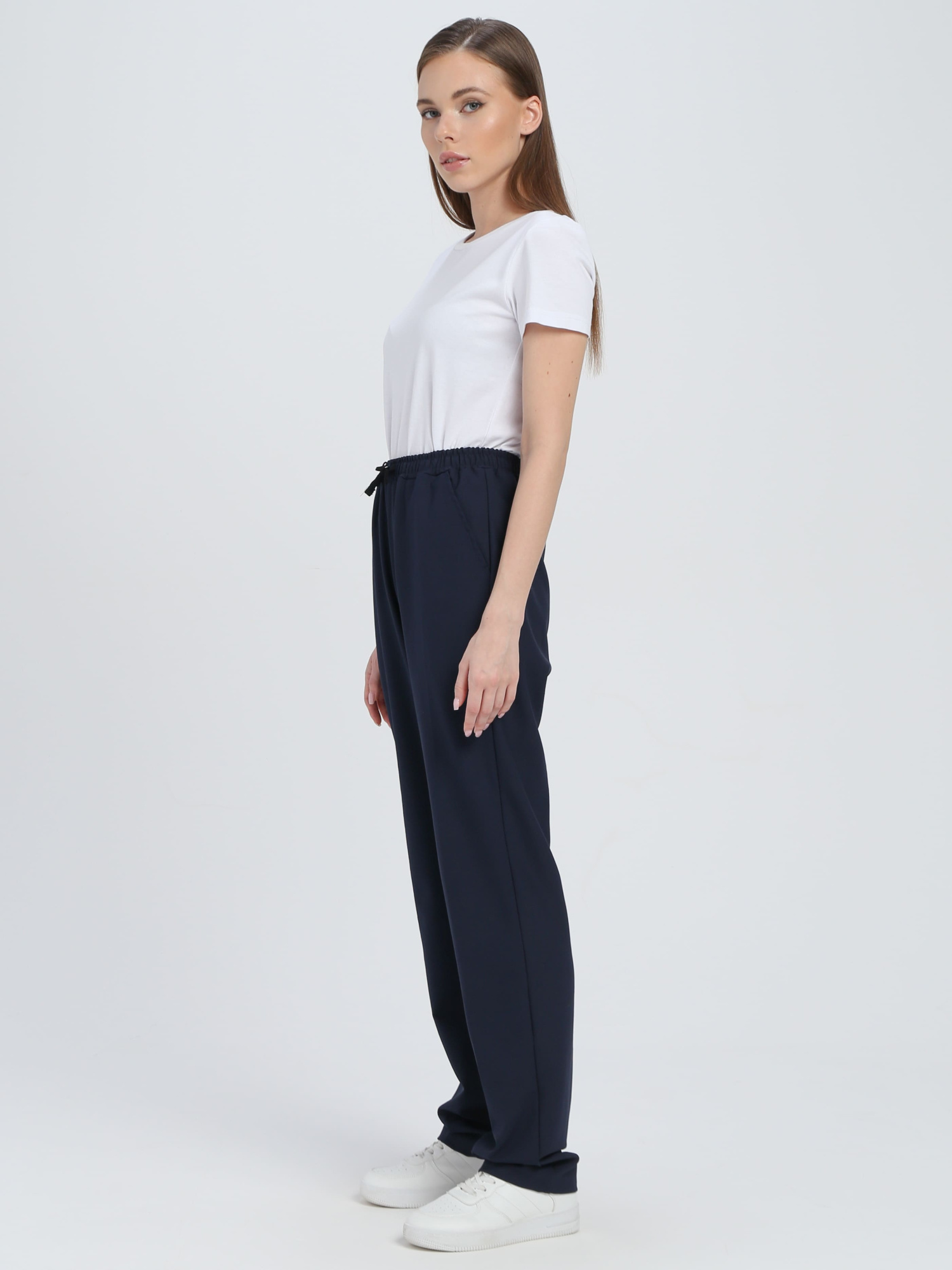 Брюки женские чуть зауженные к низу из смесовой гладкокрашеной ткани.