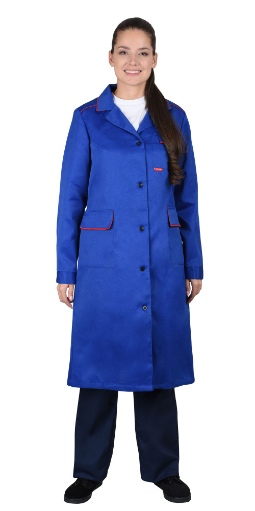 Халат "ТЕХНИК" женский васильковый с красным (ЧЗ) (120-124/170-176)