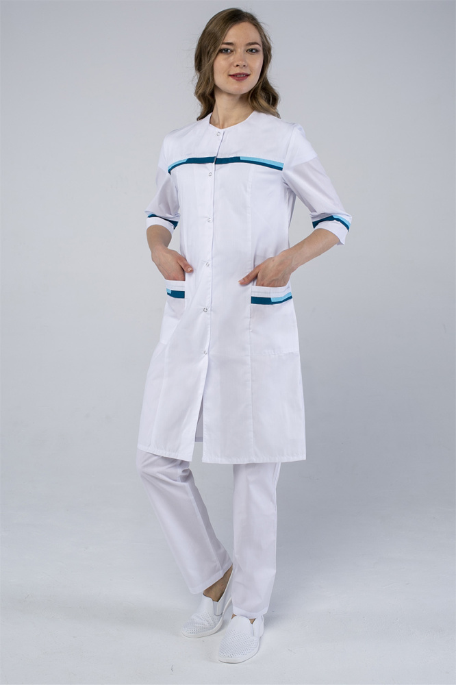 Халат женский Лотос (тк.ТиСи), белый/голубой (ЧЗ) (50/158-164)