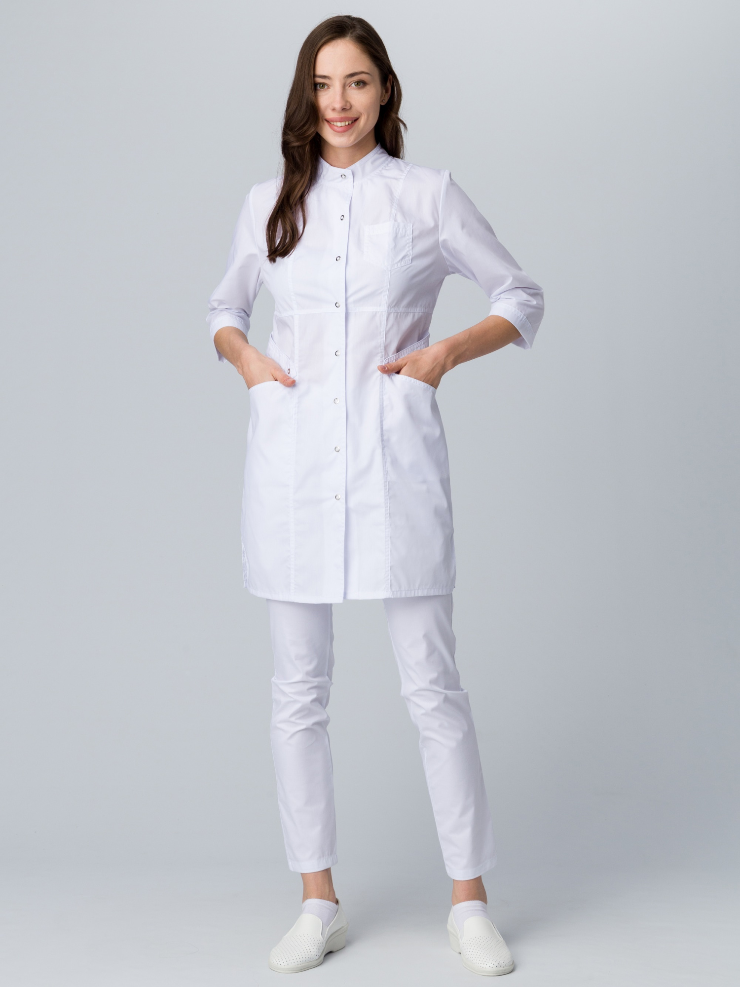 Халат женский Симпл-001 (тк.Смесовая,120) MedLine, белый (ЧЗ) (120-124/158-164)