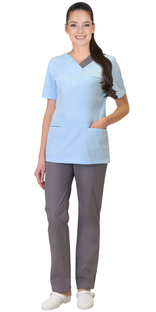 Костюм "КЭТРИН" женский: блуза, брюки, голубой с темно-серым (ЧЗ) ( 80-84/170-176)