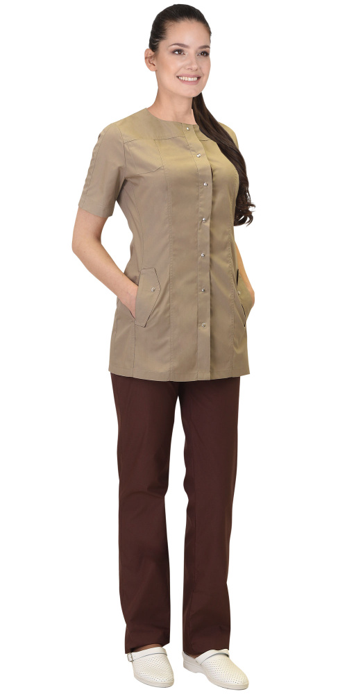 Костюм "МЕДЕЯ" женский: блуза, брюки, бежевый с шоколадным (ЧЗ) (112-116/170-176)