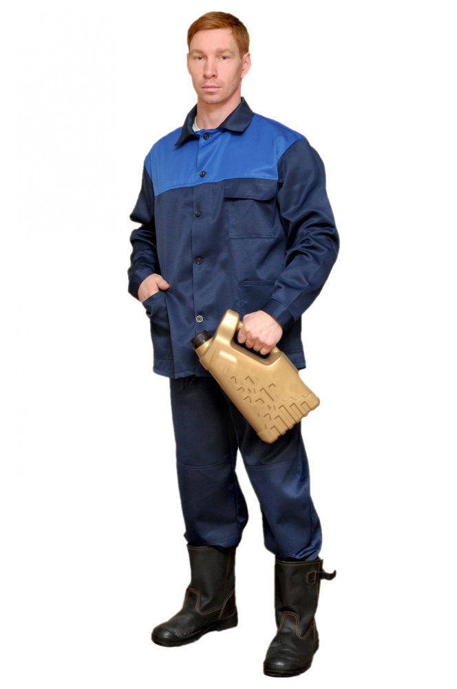 КОСТЮМ СТАНДАРТ 100%ХЛОПОК САРЖА (КУРТКА+ БРЮКИ) СИНИЙ+ВАСИЛЕК (Кронос) (ЧЗ) (144-148/182-188)
