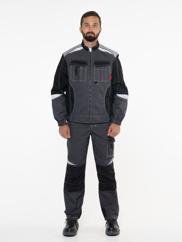 Куртка "Фаворит-Мега" серая с черн., СОП Тк. Rodos (ЧЗ) (128-132/182-188)