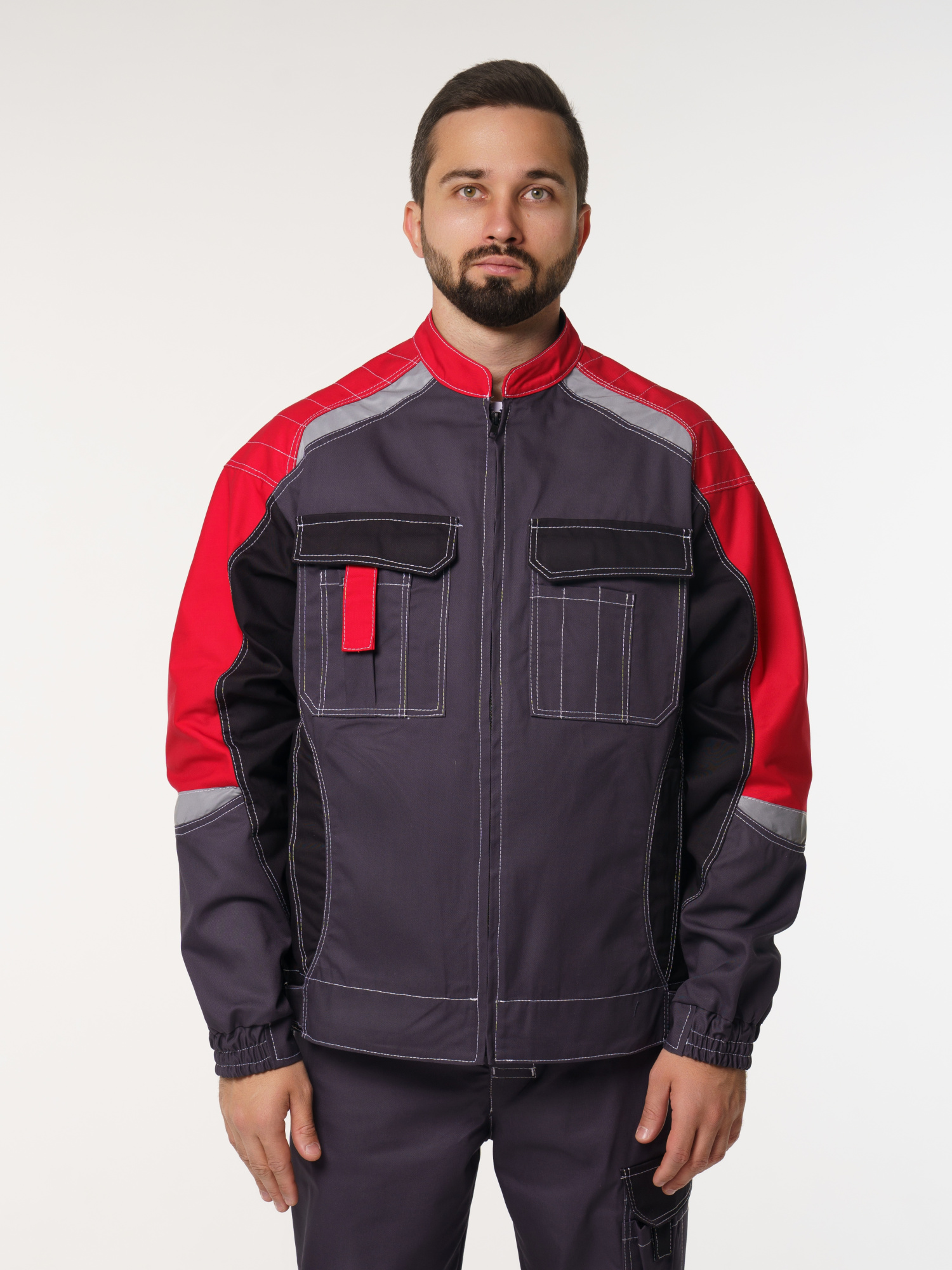 Куртка мужская Фаворит-Мега №116 серый с красным, черным (ЧЗ) (136-140/182-188)