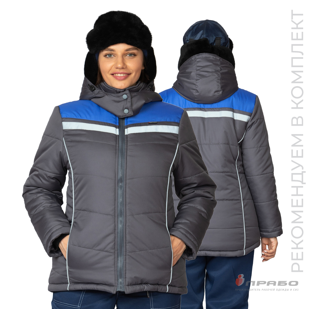 Куртка женская утеплённая "Онега-М" с трехслойным утеплителем тёмно-серая/электрик (ЧЗ) ПРАБО (104-108/170-176)