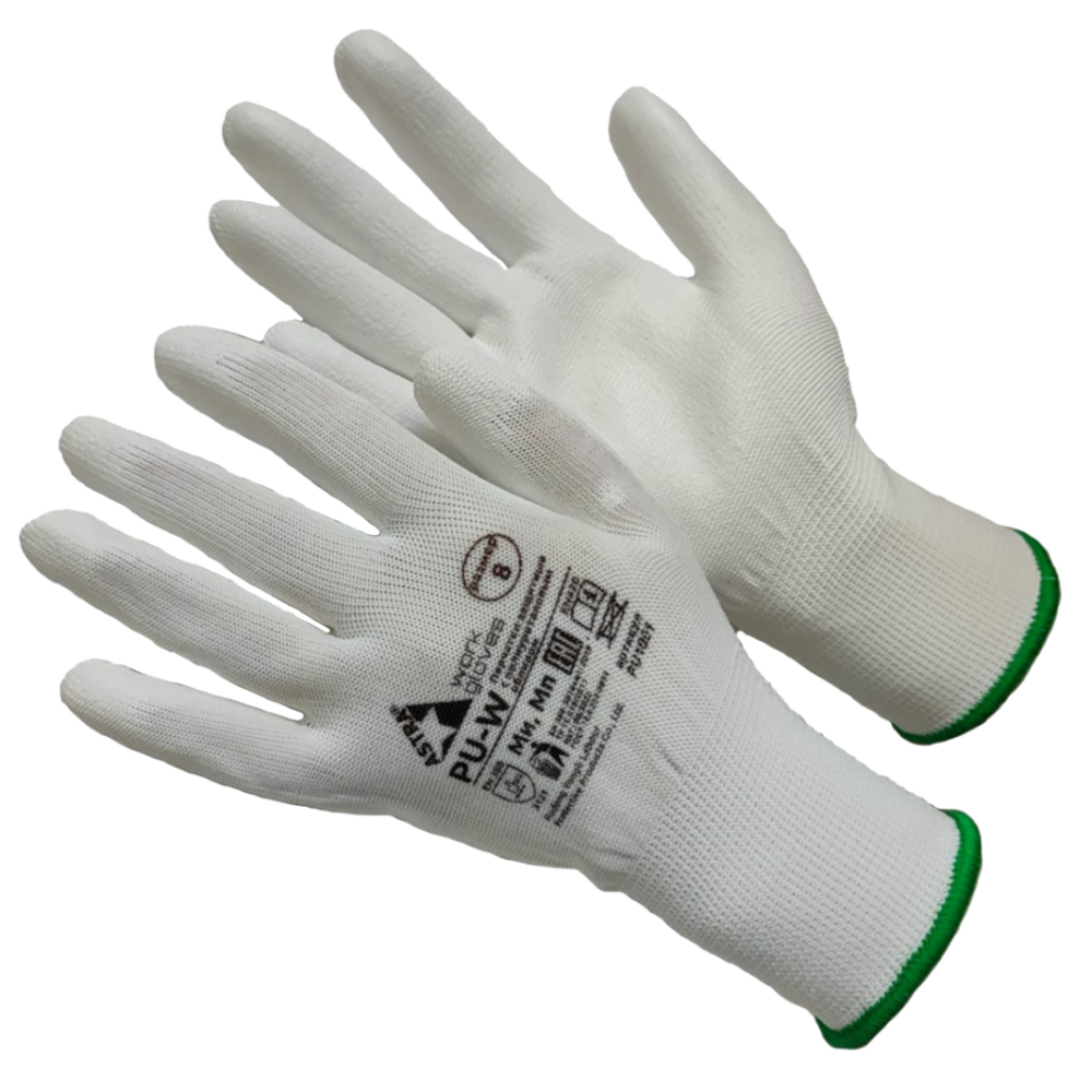 Перчатки Astra Pu-W из полиэстера белого цвета с полиуретановым покрытием (M (8))