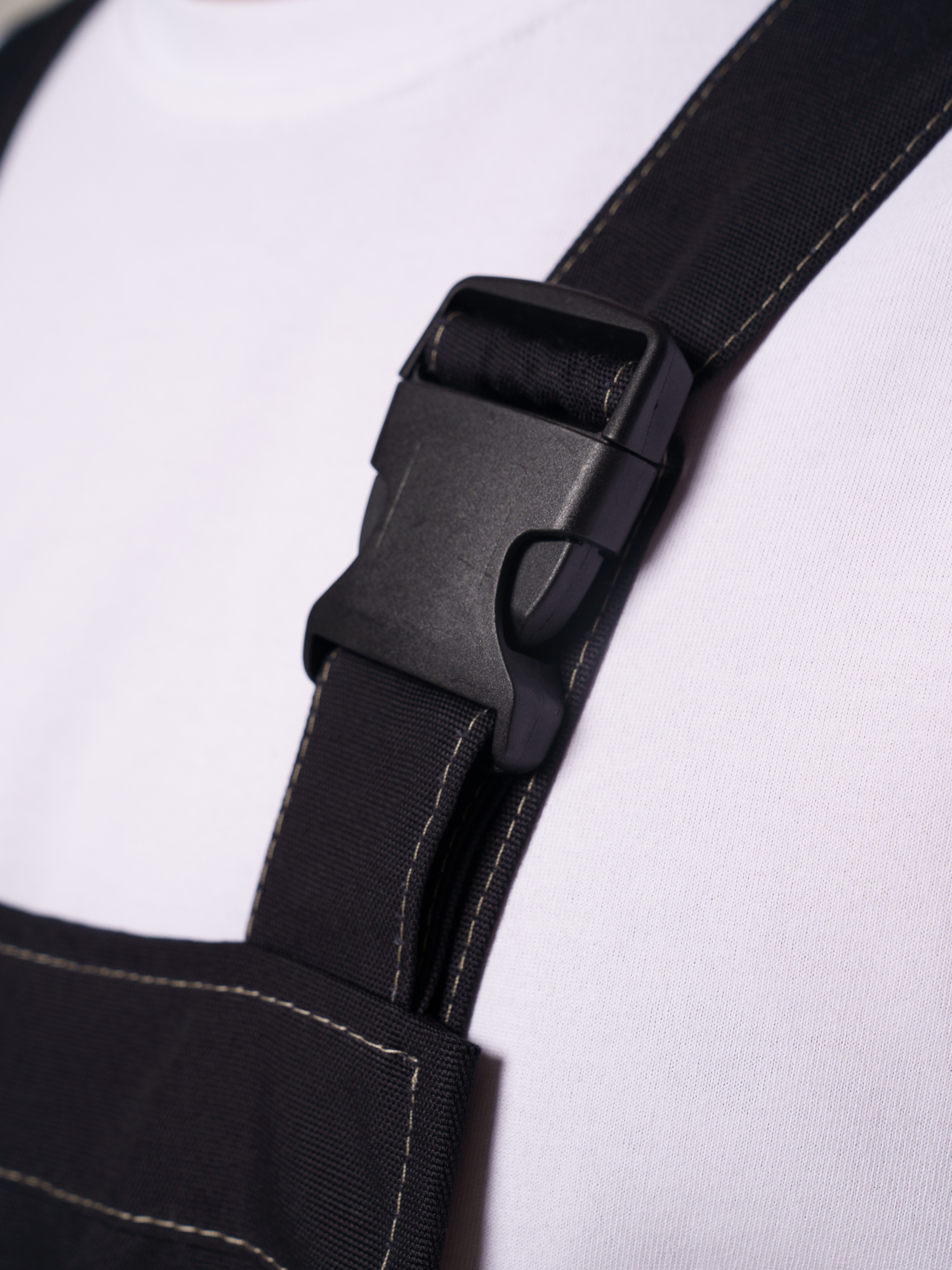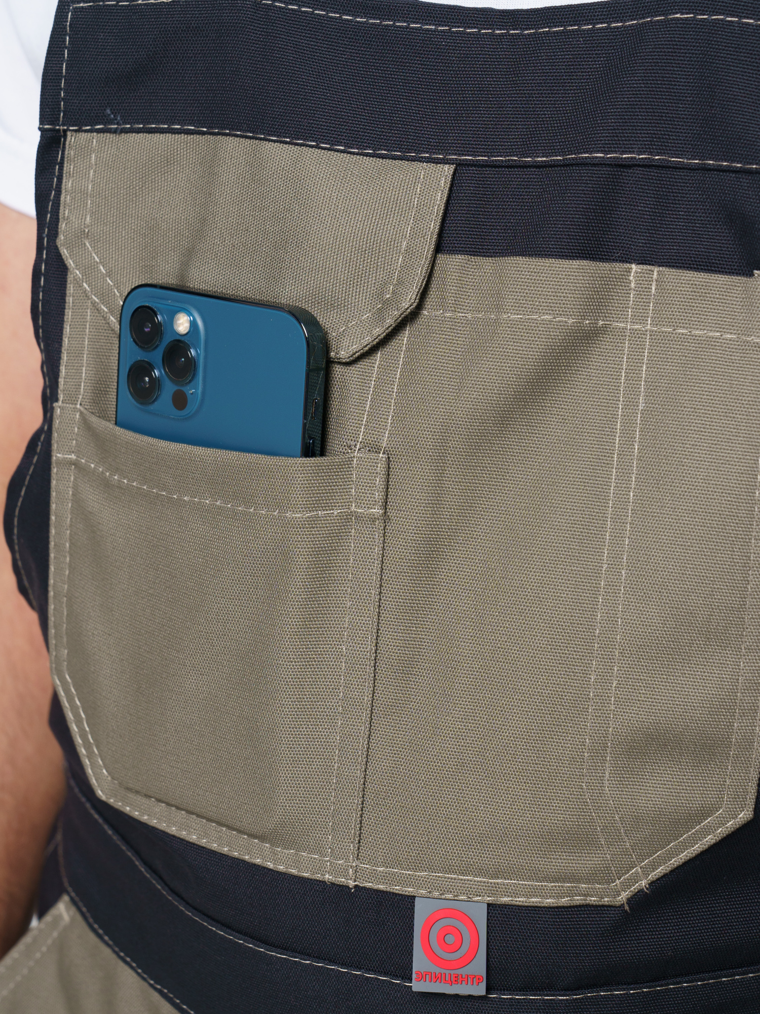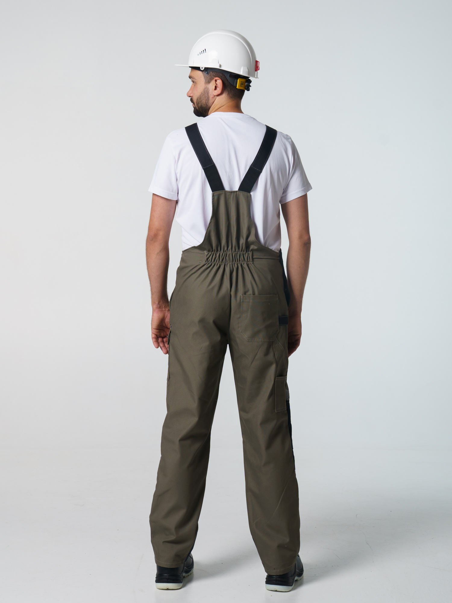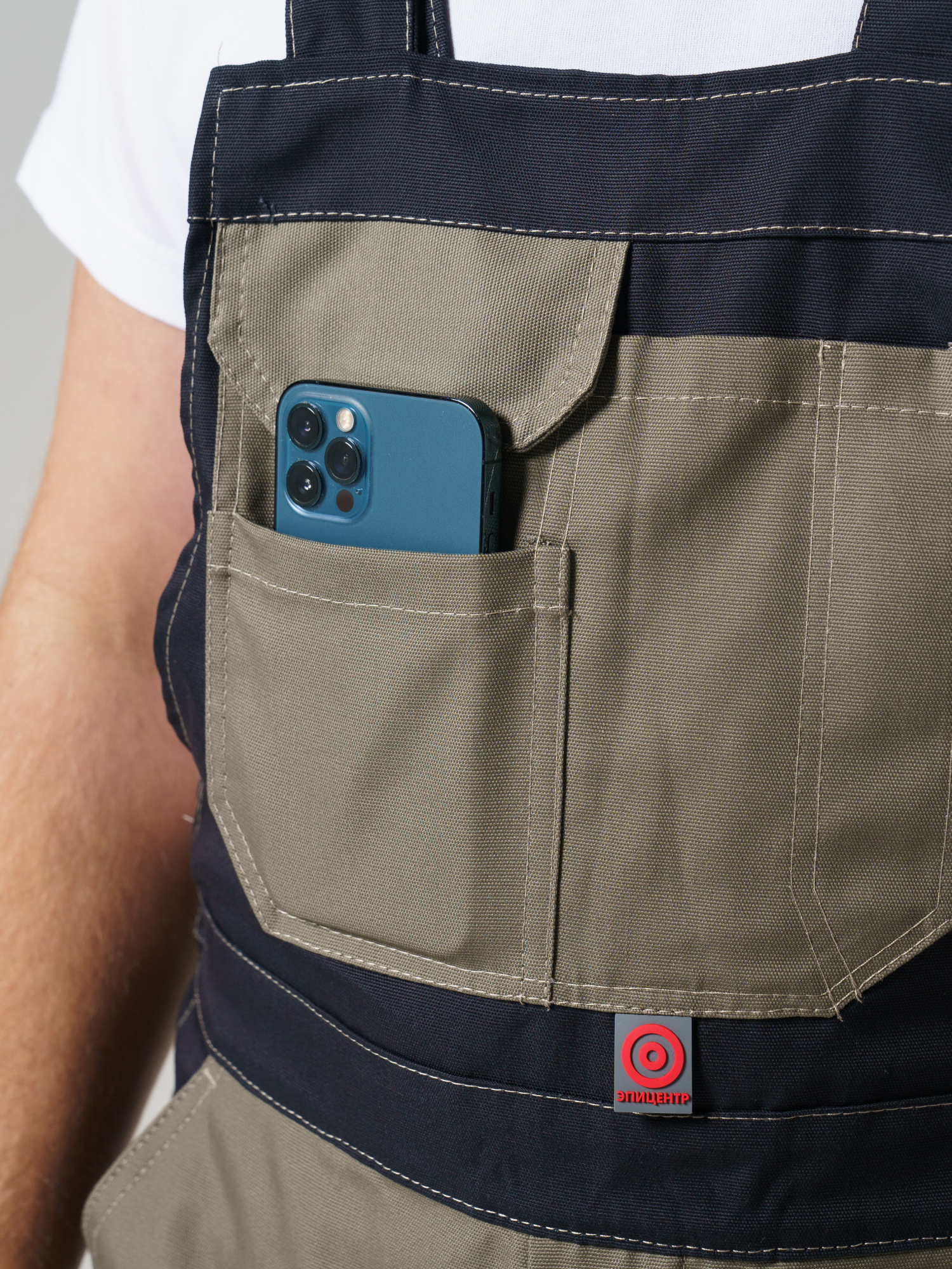 Полукомбинезон с застёжкой гульфика на молнию и застёжкой в боковом шве на пуговицы; с различными многофункциональными карманами; с объемными наколенниками. В полукомбинезоне предусмотрена лента светоотражающая (мелкодисперсная белая) 50 мм фигурной формы.