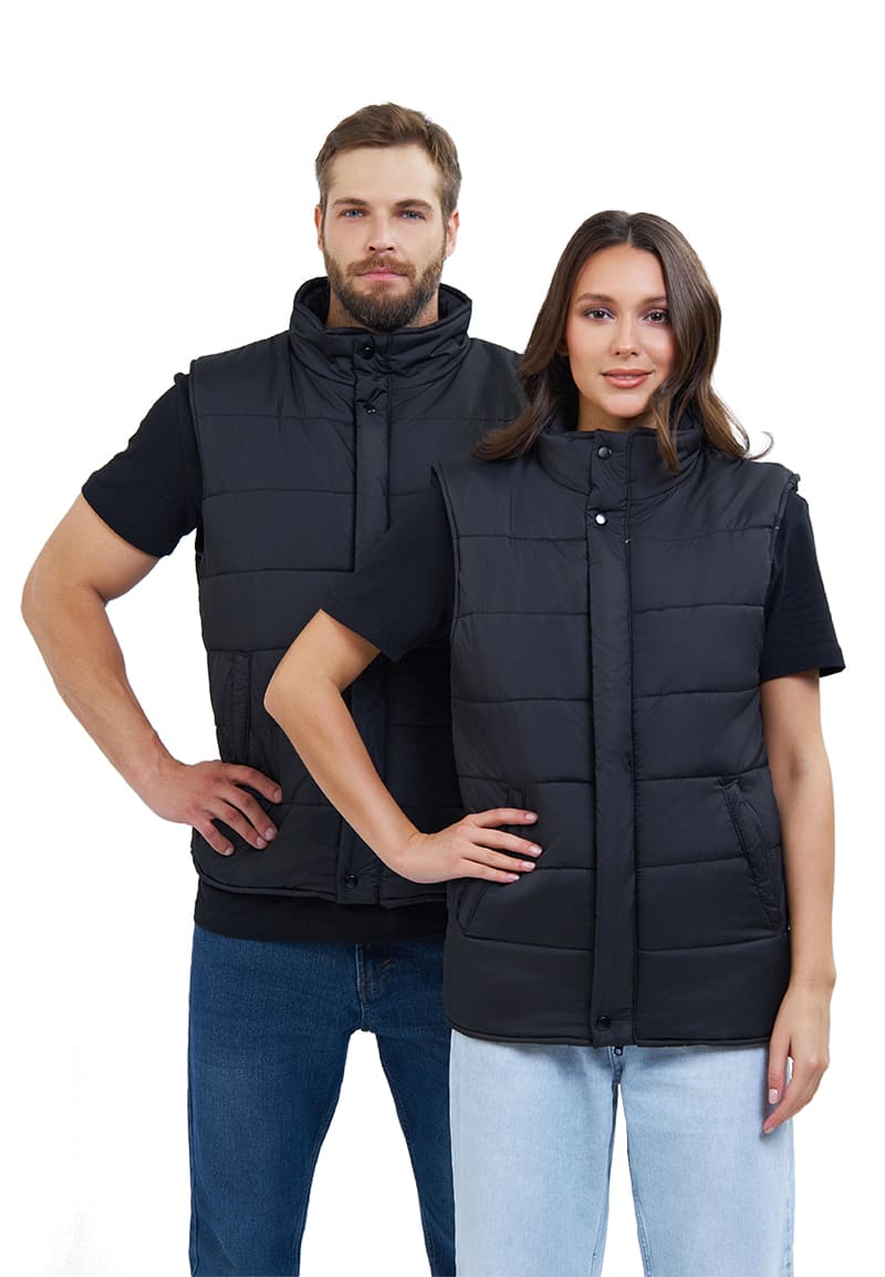 Жилет мужской, прямого силуэта, утепленный, простеган декоративными строчками с двумя слоями утеплителя: